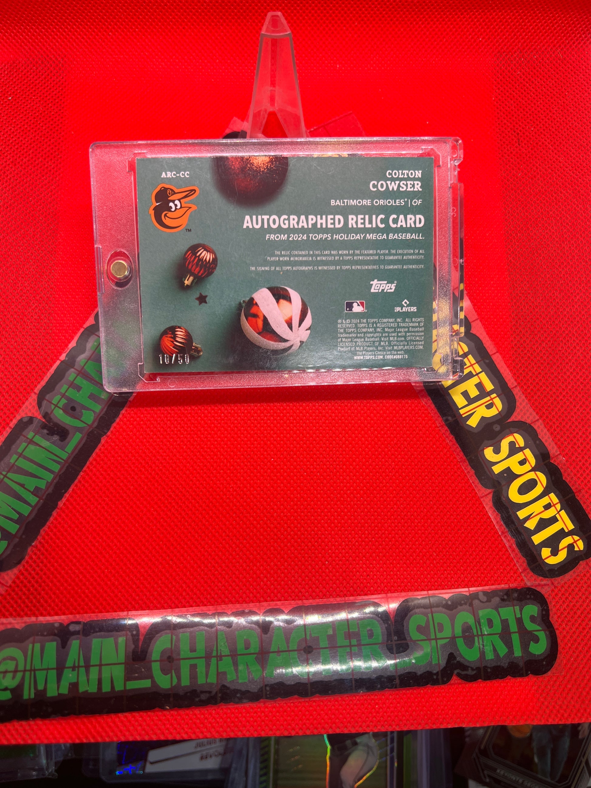 Colton Cowser Topps Holiday Series- Rookie Autographed card with game used memorabilia patch 10/50